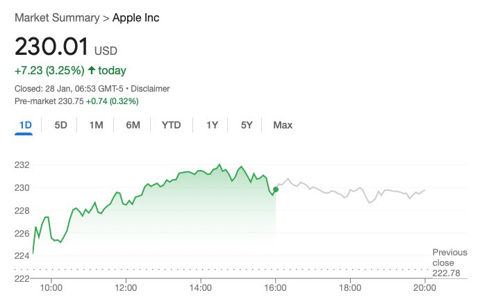 AAPL fait exception avec une montée de 3,25 %