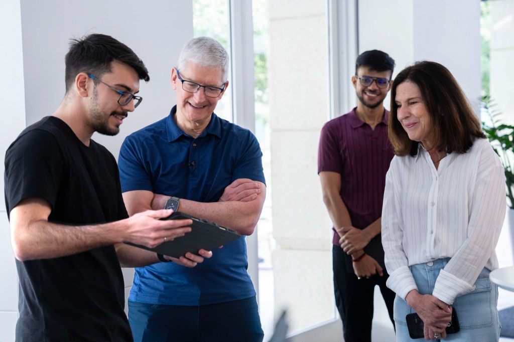 Cook a accueilli les étudiants avec son ouverture habituelle, qui est devenue un mème parmi les fans. « Bonjour », a déclaré Cook avant de faire le buzz sur la WWDC 2024. « C’est un gros événement. »