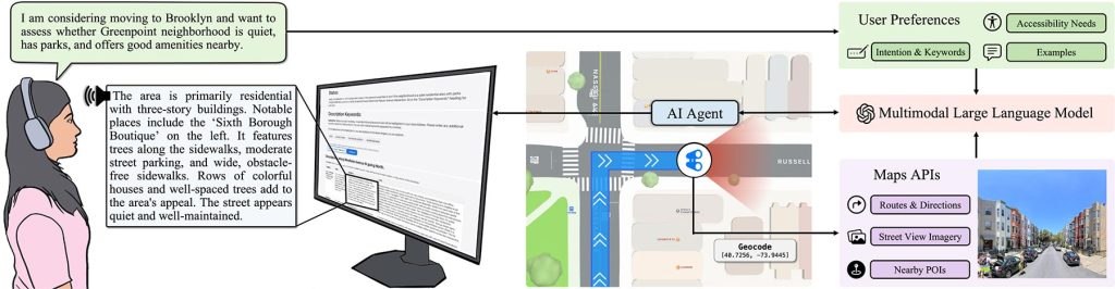 SceneScout propose deux modes principaux : le Route Preview et l’Exploration Virtuelle. Le premier permet aux utilisateurs d’obtenir une vision d’ensemble de ce qu’ils rencontreront sur leur chemin, notamment la qualité des trottoirs et les intersections. Le second, plus ouvert, permet aux utilisateurs de décrire ce qu’ils recherchent, comme un quartier calme avec accès à des parcs.