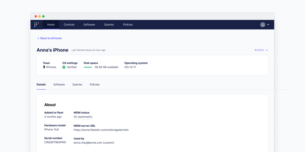 Ce modèle open-source de Fleet offre aux organisations la possibilité de personnaliser la gestion des appareils selon leurs besoins spécifiques. Que ce soit pour des dispositifs mobiles comme les iPhones et iPads ou pour des ordinateurs de bureau et portables, cette flexibilité est essentielle.