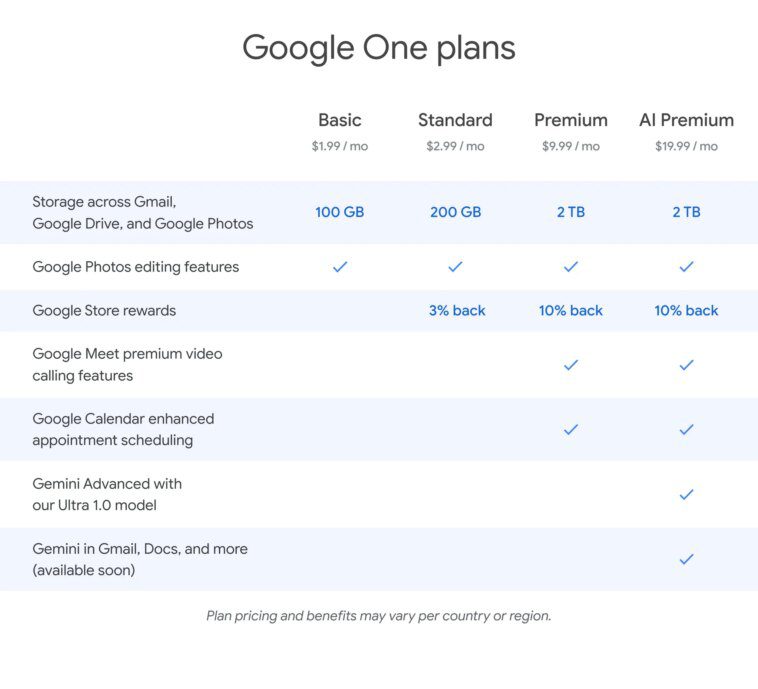 Tout comme OpenAI le fait avec ses modèles GPT plus puissants, Google facture un abonnement si vous souhaitez accéder au Gemini Advanced alimenté par Ultra 1.0. Il fera partie du nouveau forfait Google One Premium à 20 $ par mois. L’abonnement comprend également 2 To de stockage Google Drive et les extras habituels du forfait à 10 $ par mois, notamment les outils d’édition Google Photos, les mises à niveau de Workspace, l’accès VPN et les avantages du support client. Il a été récemment révélé que Google One approchait les 100 millions d’abonnés. L’ajout des Gémeaux fera probablement augmenter ces chiffres encore davantage.