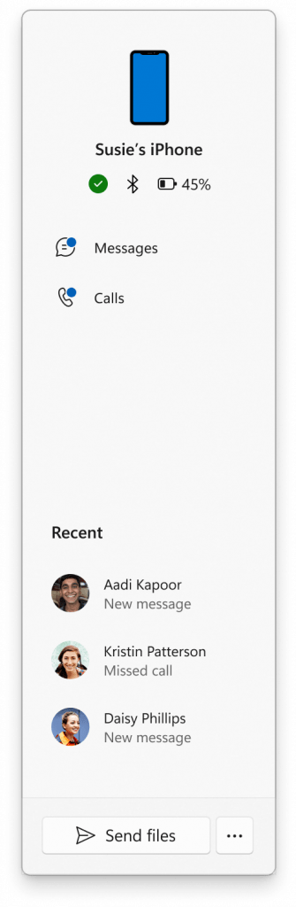 Avec la dernière mise à jour, les utilisateurs d’iPhone peuvent désormais accéder directement aux fonctionnalités de leur téléphone depuis le menu Démarrer. Cette liaison entre devices permet de bénéficier des mêmes avantages que les utilisateurs d’Android.