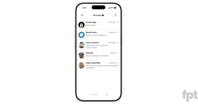 Prosser a partagé une vidéo illustrant ce changement avec une maquette de l’application Messages. Actuellement, la barre de recherche est en haut, nécessitant de faire défiler l’écran pour y accéder.