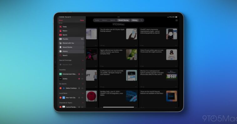 Apple News, en revanche, dispose d’une barre latérale remplie d’options que vous pouvez utiliser pour personnaliser sa barre d’onglets. J’ai pu ajouter quelques sections que j’utilise souvent (Enregistré et Historique) à ma barre d’onglets d’actualités.