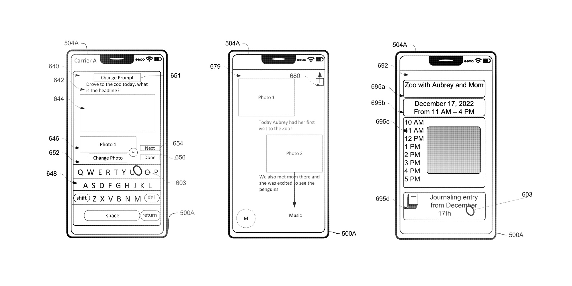 Apple a déposé un nouveau brevet auprès de l’Office américain des brevets et des marques (USPTO) qui révèle de nombreuses améliorations sur lesquelles la société a travaillé pour son application Journal. Il est intéressant de noter que les illustrations du brevet suggèrent que l’application bénéficiera d’une sorte d’intégration profonde avec Apple Intelligence pour fournir des suggestions intelligentes.
