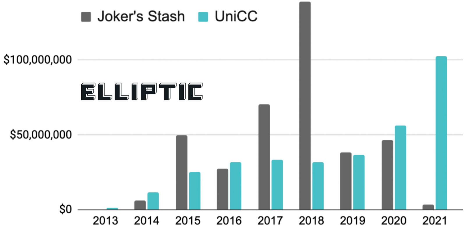 Au total, de 2013 à aujourd’hui, Elliptique estime qu’UniCC a facilité la vente de 358 millions de dollars de matériel illicite, avec des dizaines de milliers de nouvelles cartes ajoutées à sa plate-forme chaque jour.
