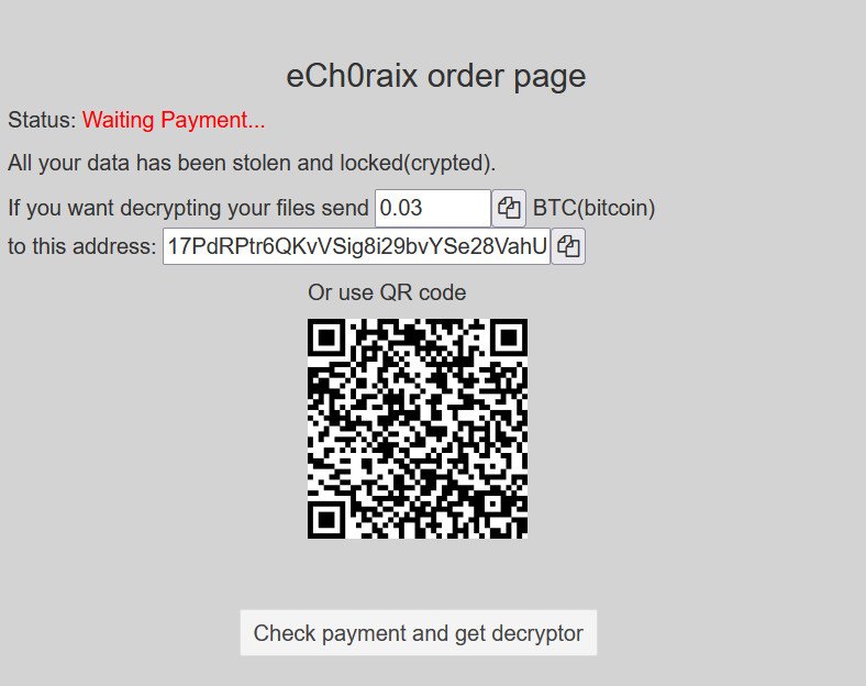 EZpublish-france.fr a vu des demandes de ransomware ech0raix allant de 0,024 (1 200 $) à 0,06 bitcoins (3 000 $) lors de ces récentes attaques. Certains utilisateurs n’avaient aucune option de sauvegarde et ont dû payer l’acteur malveillant pour récupérer leurs fichiers.