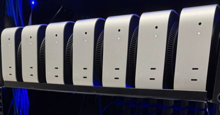 Intégrer Thunderbolt 5 aux services basés sur M4 Pro représente une avancée majeure pour les développeurs. Avec une bande passante bidirectionnelle de 80 Gbps, ce système est jusqu’à 800 % plus rapide que l’Ethernet 10G. Cela facilite grandement les transferts de fichiers et l’agencement efficace des Mac minis, que ce soit pour l’entraînement d’IA, le montage vidéo ou le testing logiciel distribué.