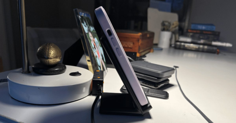 Ce qui distingue vraiment ce chargeur, c’est sa facilité d’utilisation. Vous n’avez pas besoin de vous soucier de l’alignement, il suffit de placer votre iPhone au centre et de partir. Si vous devez répondre à un appel ou vous rendre à une réunion, vous pouvez facilement saisir votre téléphone d’une seule main. Il fonctionne avec la norme Qi, sans tension magnétique lors du retrait. Cela peut être un avantage ou une contrainte selon vos préférences.