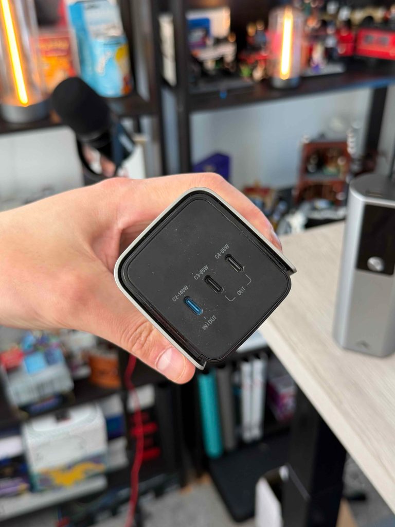 - 2 ports USB-C de 140W et 1 port USB-A de 22,5W