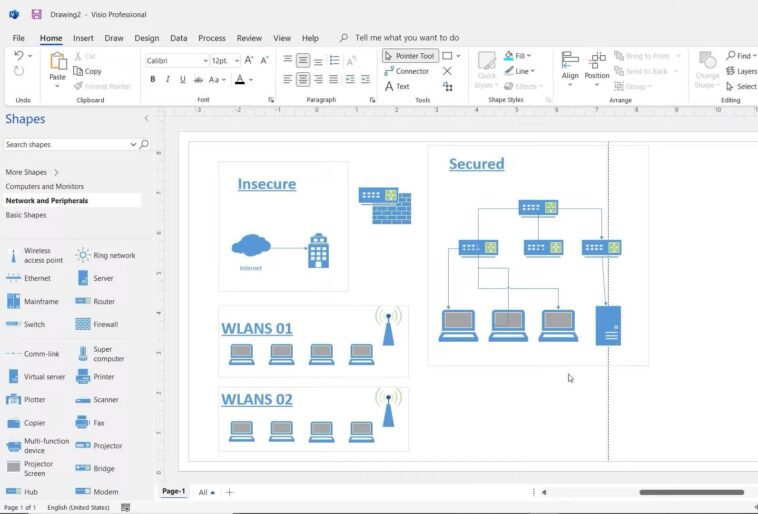Visio vous propose des dizaines de modèles, de diagrammes de démarrage et de gabarits avec lesquels travailler, ce qui facilite la conception et la présentation de graphiques. Que vous travailliez sur des organigrammes, des organigrammes, des plans d’étage ou d’autres visualisations, vous aurez accès à plus de 250 000 formes dans l’écosystème de contenu en ligne de Visio. Cette vaste sélection permet la création de diagrammes et de visualisations qui représentent avec précision vos données, y compris des diagrammes de réseau qui illustrent l’interconnectivité des appareils et des réseaux au sein d’un écosystème technique.