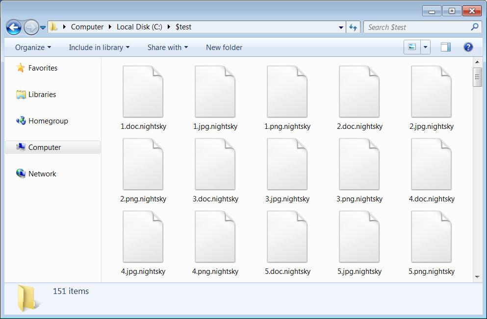 Lors du cryptage des fichiers, Night Sky ajoute l’extension .nightsky aux noms de fichiers cryptés, comme indiqué dans l’image ci-dessous.