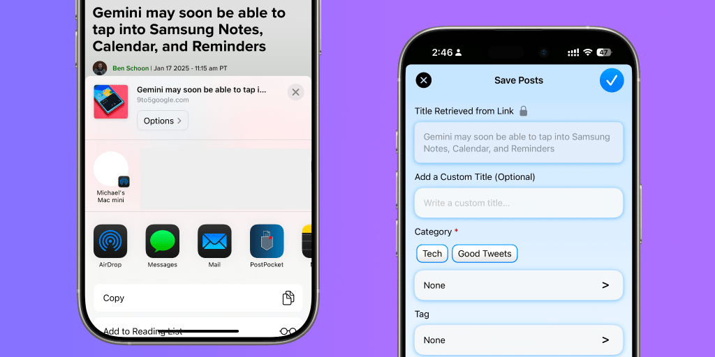 Une fois sur PostPocket, vous avez la liberté de sauvegarder vos articles tels quels, ou d’y ajouter une catégorie, des tags, ou un titre personnalisé. Grâce à ces options, la gestion de vos liens devient facile et agréable. Tout est centralisé et vous permet de rester organisé.