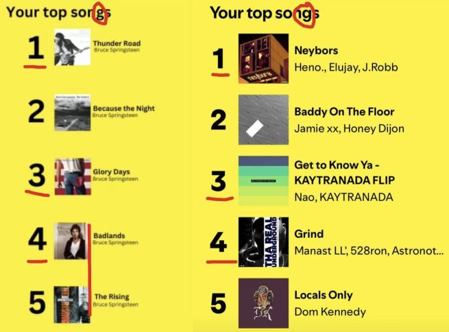 Finalement, interpellé par des journalistes, Gottheimer a avoué que les résultats avaient été falsifiés. Il a expliqué : « Cela serait mon Spotify Wrapped si je ne partageais pas mon compte avec mes enfants de 12 et 15 ans ». En précisant que, bien que Bruce reste son favori, il apprécie aussi Taylor Swift, il a utilisé un argument qui semble familier aux parents.