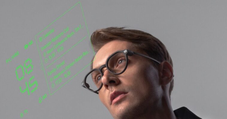 Mais alors, ces lunettes sont-elles réellement intelligentes sans caméra ni haut-parleur ? La réponse réside dans leur affichage. Chaque verre intègre un écran capable d’afficher des notifications discrètes, un téléprompteur, des traductions en direct et même des informations boursières. Le système utilise un lettrage vert sur toute sa surface, sans couleur supplémentaire.