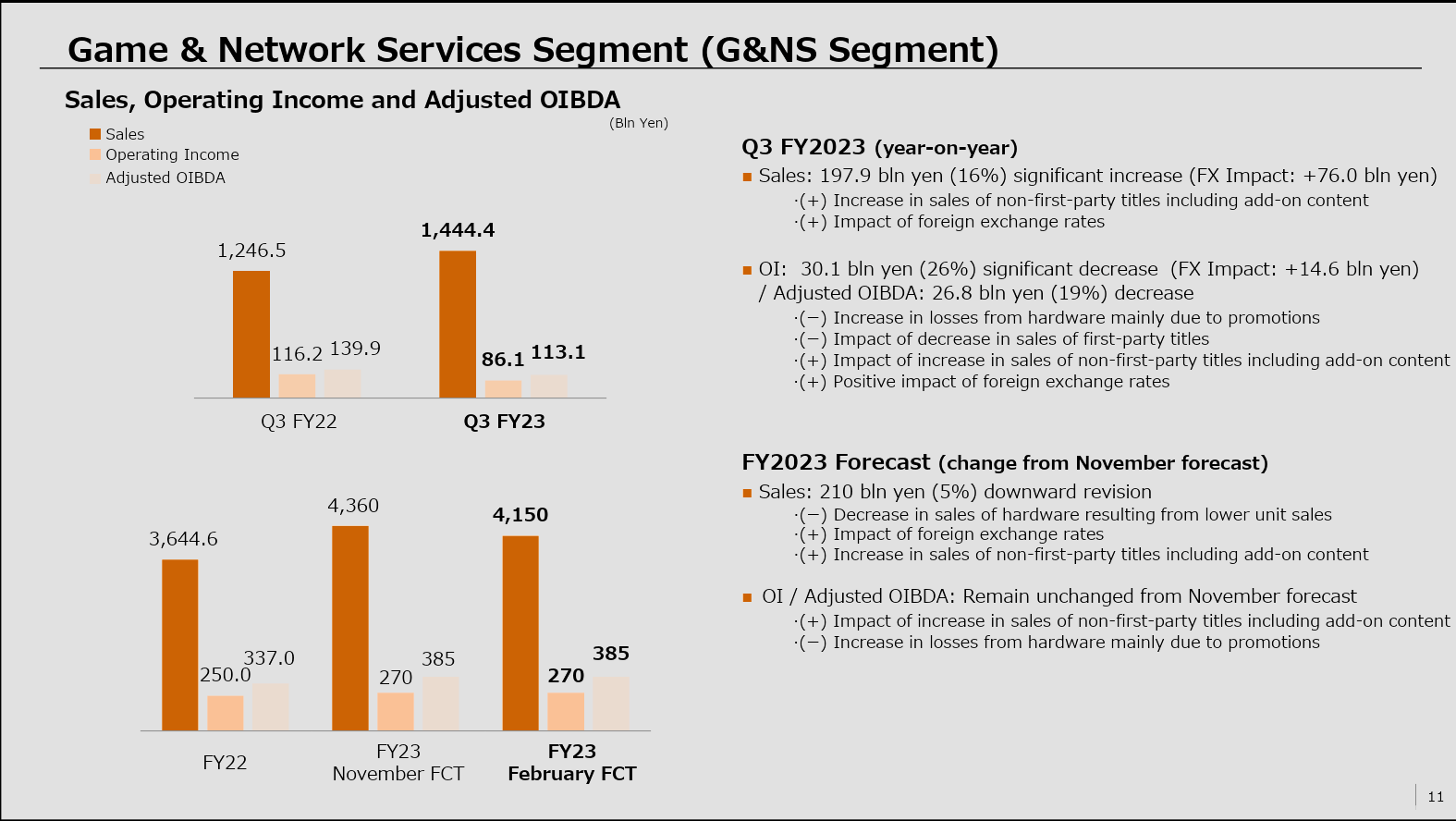 Sony a également révisé ses prévisions de ventes pour l’exercice financier pour la division jeux, les réduisant de 210 milliards de yens à 4,15 billions de yens. Cela est en partie attribué à une diminution des ventes de première partie et aux pertes de hardware dues aux promotions.