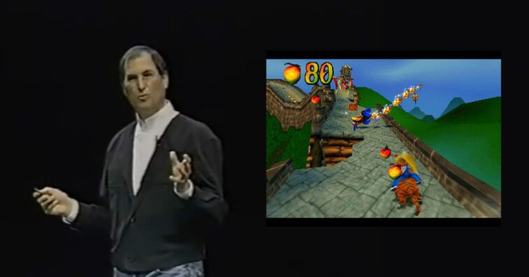 Jobs, accompagné de Phil Schiller, a annoncé sur scène le Virtual Game Station (VGS) de Connectix. Cet émulateur était le premier capable d’exécuter des jeux PlayStation à pleine vitesse sur n’importe quelle plateforme. Et pour illustrer cette prouesse, Schiller a joué à Crash Bandicoot : Warped en direct pendant le keynote.