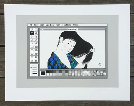 En tant qu’amateur de technologie, j’ai mon fidèle MacBook Pro, accompagné de l’élégant clavier Magic d’Apple. Bien que je soit préservé de cette tentation, je ne peux m’empêcher d’admirer la magnifique gravure sur bois de la scène démonstrative de MacPaint que Susan Kare a également mise en vente.