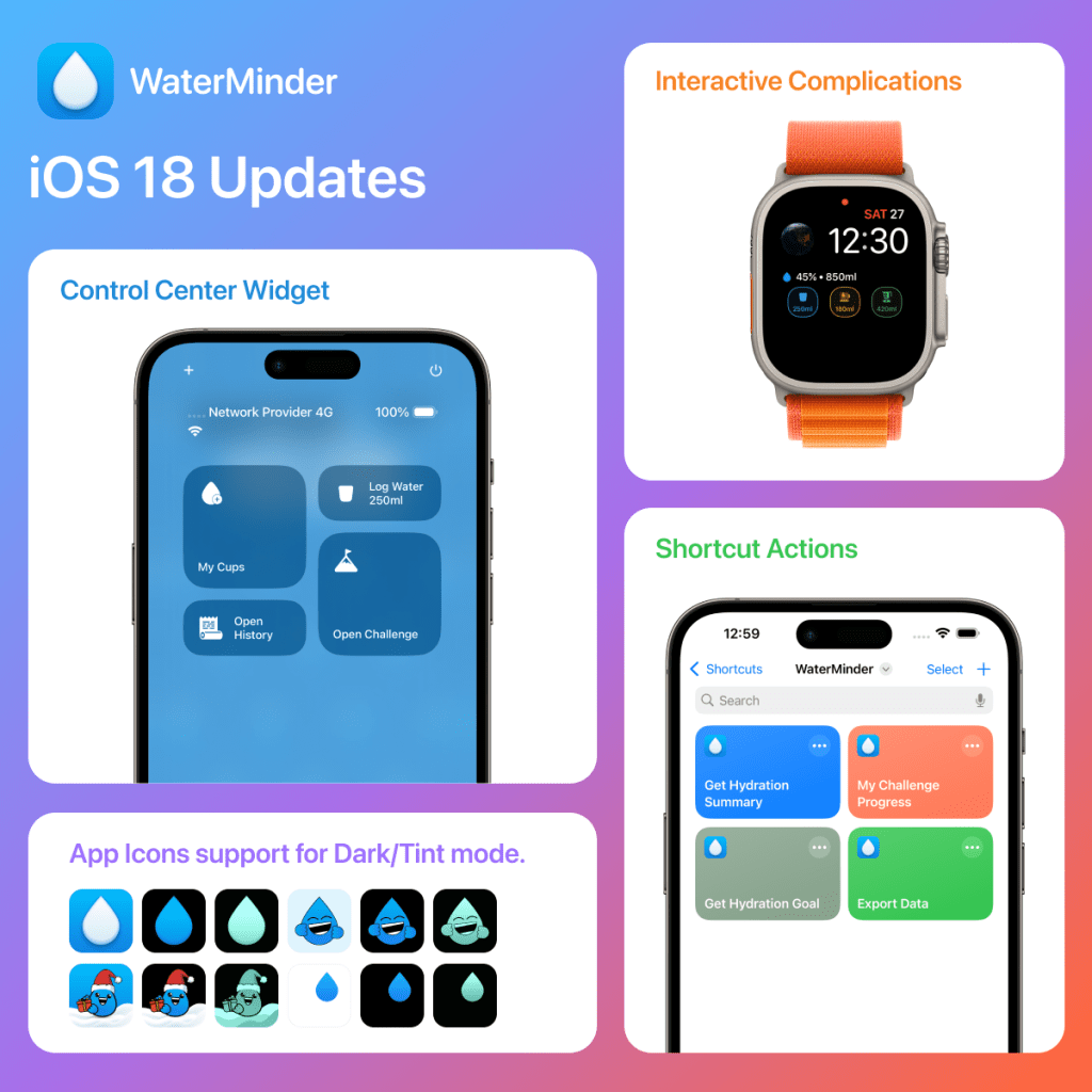 - Widgets interactifs pour Apple Watch : consultez vos progrès et loguez votre consommation sans ouvrir l’application.