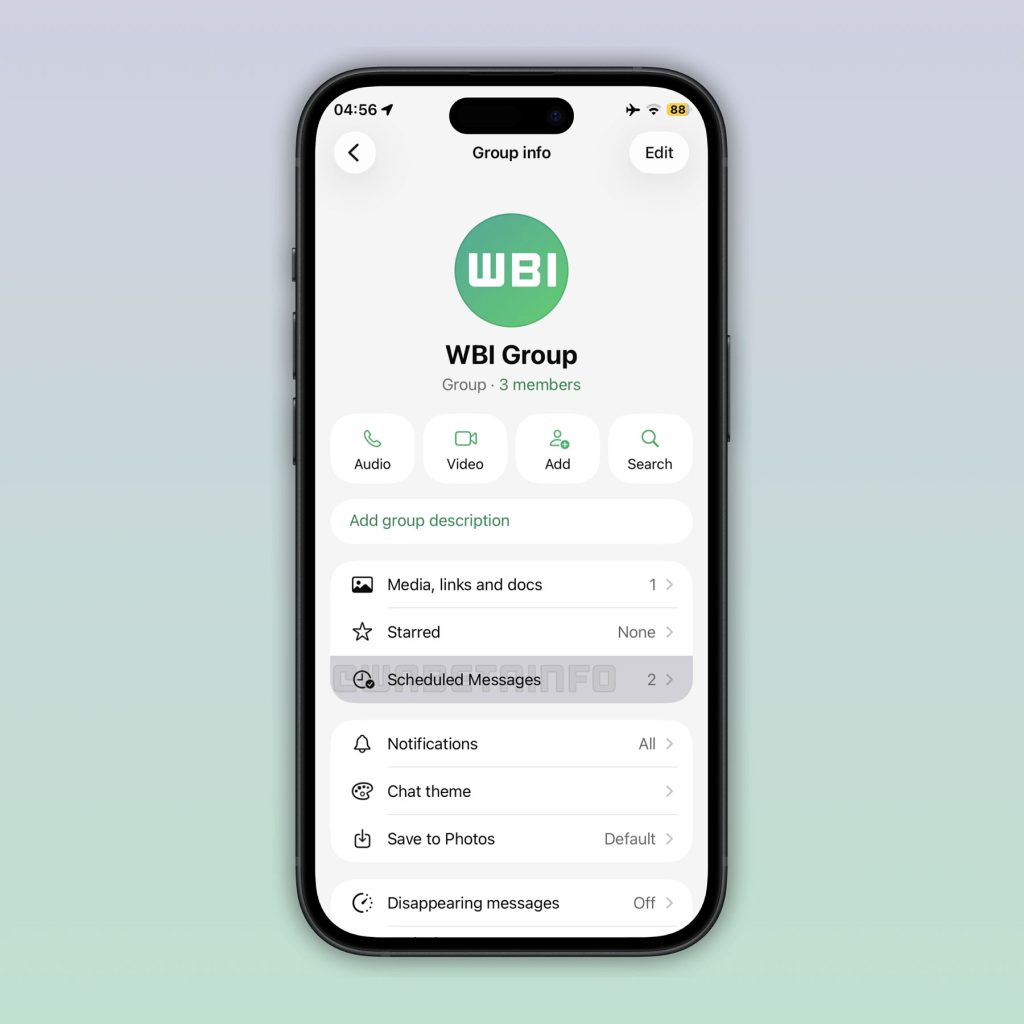 Selon les informations divulguées par WABetaInfo, des références récemment découvertes dans la version TestFlight de WhatsApp indiquent que Meta travaille activement sur cette fonctionnalité. Bien qu’elle ne soit pas encore disponible pour le public, les aperçus montrent un nouvel élément dans l’interface des groupes : le menu “Messages planifiés” est désormais présent, en dessous des options “Médias, liens et documents” et “Favoris”.